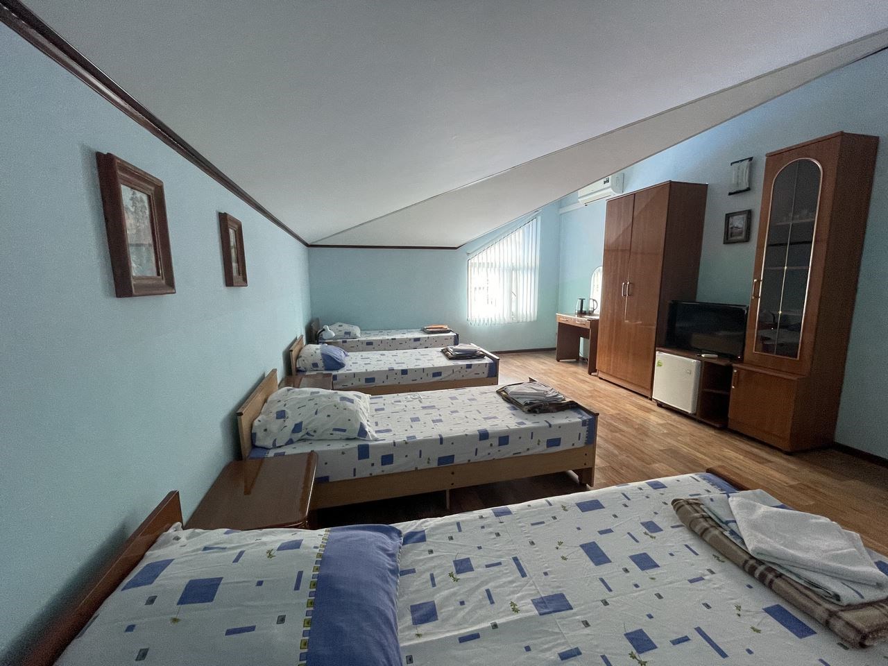 | Бюджет 4-местный | 20 кв.м. | 4 чел. | Мебель (кровати односпальные, прикроватные тумбочки, стол, стулья, шкаф), Оборудование (кондиционер,... | |