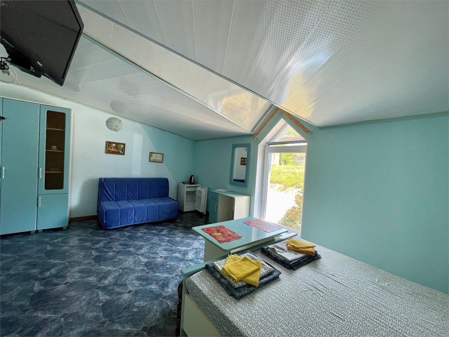 - Оборудование: кондиционер, микроволновая печь, набор посуды, телевизор, холодильник, электрочайник