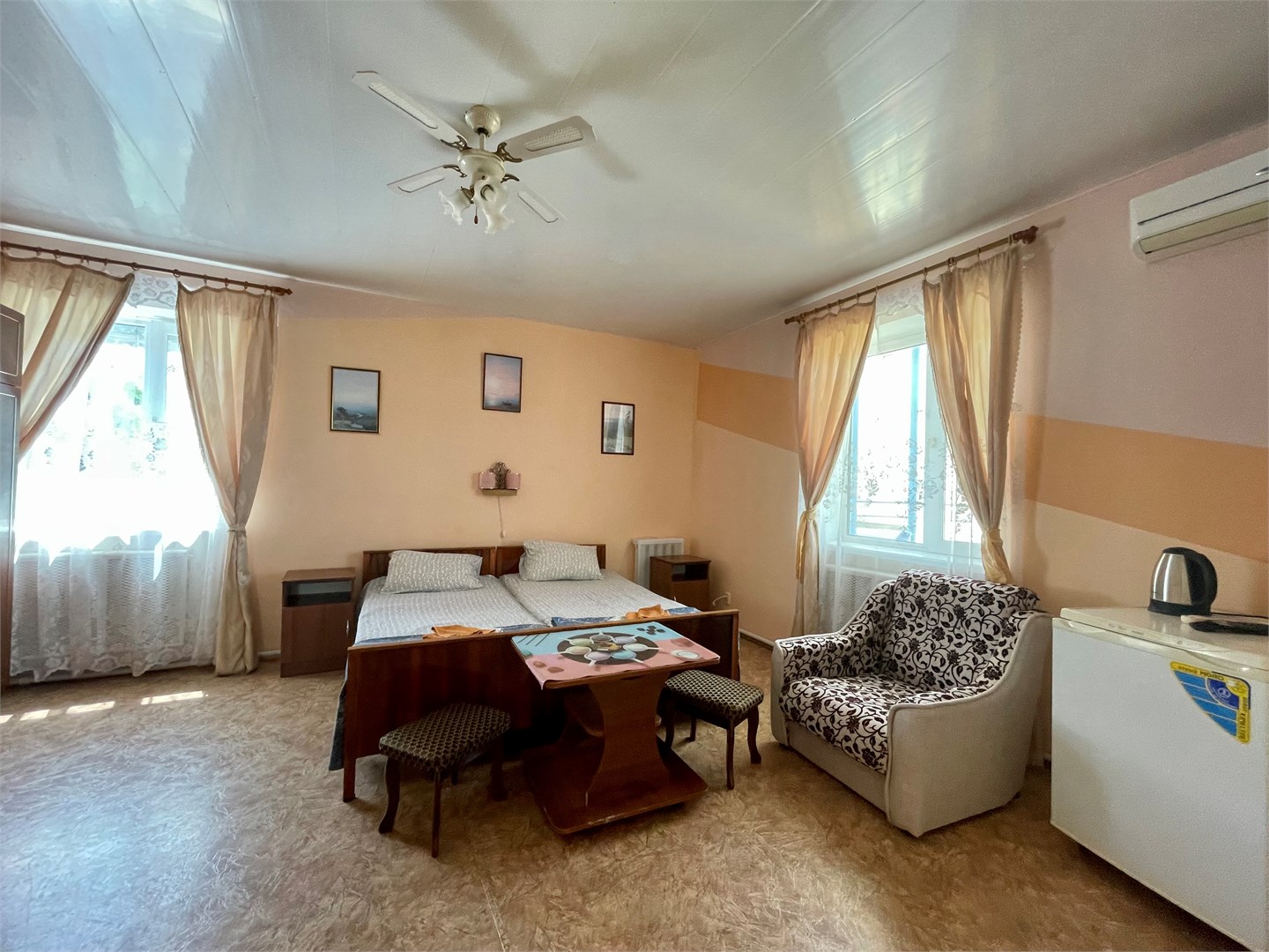 | Стандарт 3-местный мини | 19 кв.м. | 3 чел. | Мебель (диван, кровати односпальные, прикроватные тумбочки, стол, стулья, шкаф), Оборудование (конди... | |