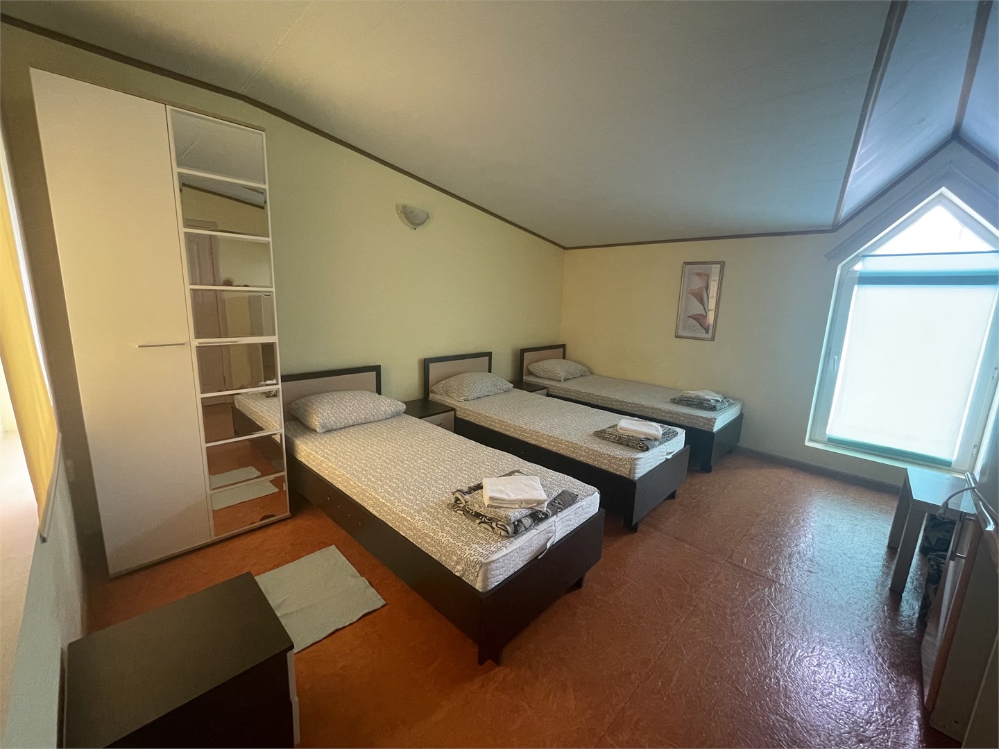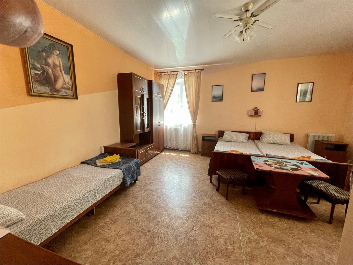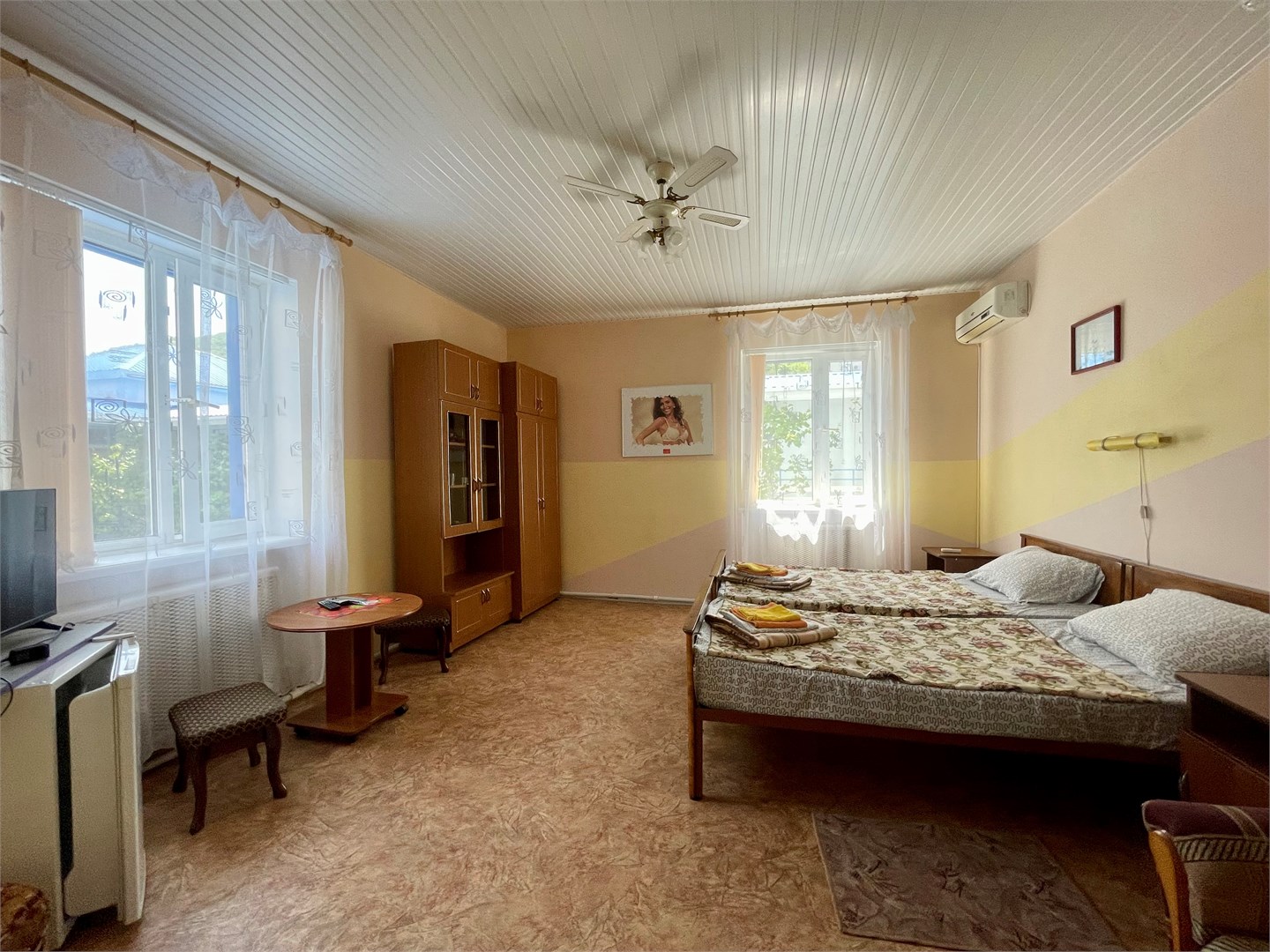 - Мебель: диван, кровати односпальные, кровать двуспальная, прикроватные тумбочки, стол, стулья, шкаф